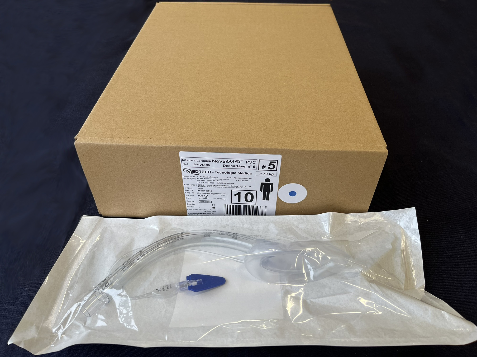 # CAIXA FECHADA com 10 unidades de Máscaras Laríngeas NovaMASC/Medtech Descartáveis nº 5,0 “Soft” em embalagens individuais, esterilizadas e prontas para uso imediato;